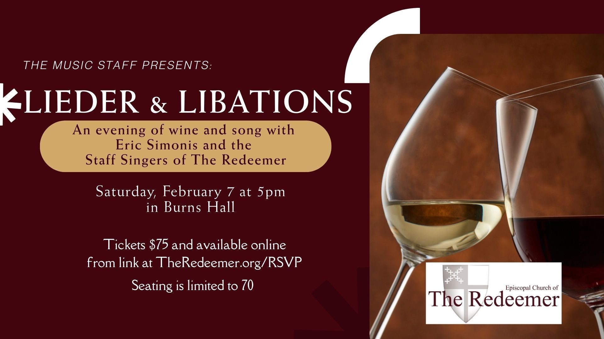 An evening of wine and song with Eric Simonis and the Staff Singers of The Redeemer