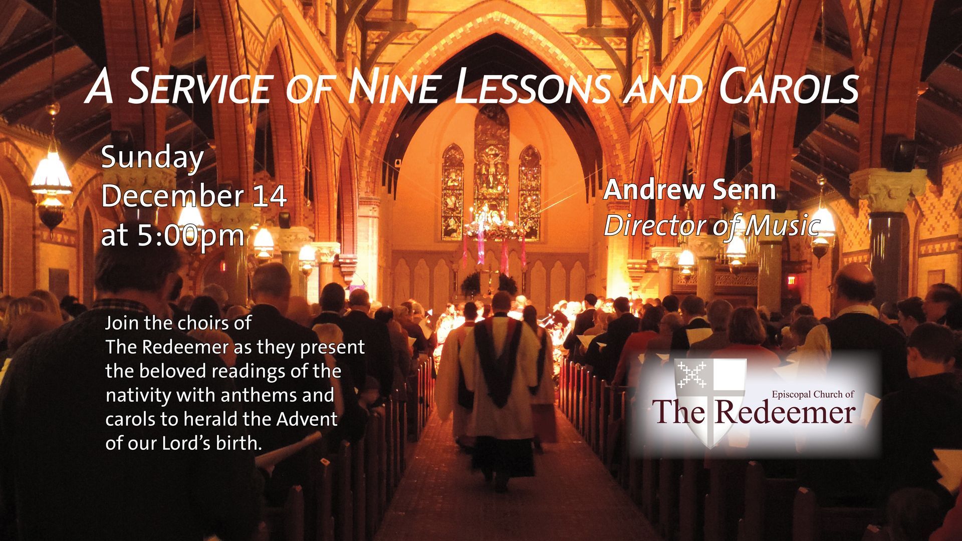 The choirs of The Redeemer will offer carols and hymns, interspersed with familiar nativity readings, in this traditional Christmas service.