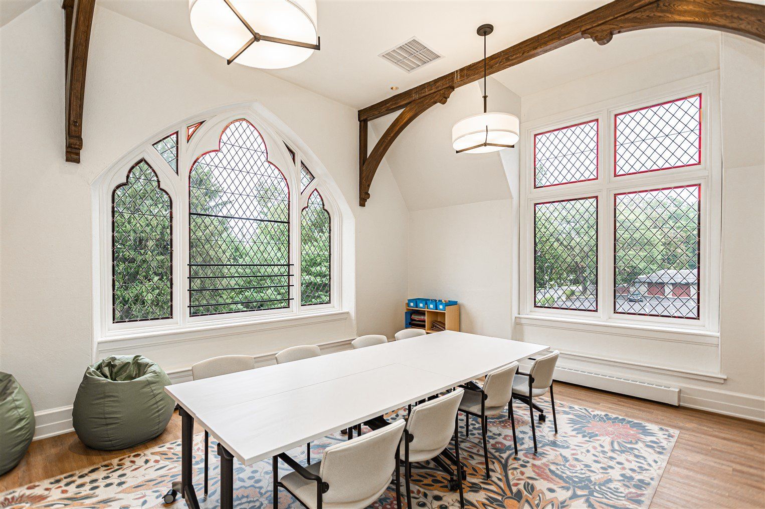 Photos of interior spaces and information for community use.